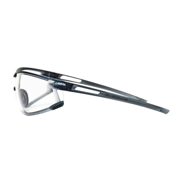 Lentes de seguridad Blackbear marca LAMIRA, modelo 4003-CL, diseñados para ofrecer protección ocular confiable en entornos exigentes. Cuentan con mica clara con tratamiento antiempañante que garantiza una visión nítida, alta resistencia a impactos y un eficaz filtro que absorbe el 99.9 % de los rayos UV, brindando seguridad y comodidad durante su uso continuo.