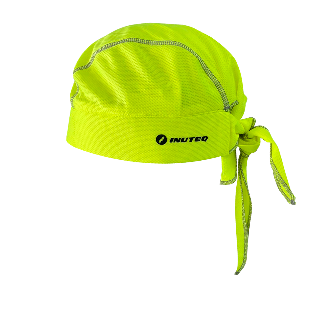 Bandana de enfriamiento por evaporación INUTEQ-H20®, diseñada para entornos industriales, laborales y actividades de alto esfuerzo físico. Ligera y de rápida reactivación, proporciona alivio térmico eficiente en ambientes de baja a media humedad, donde el flujo de aire potencia su desempeño. Fabricada con exterior e interior 100 % poliéster y núcleo superabsorbente INUTEQ-H20® con propiedades antibacterianas, garantiza higiene, confort y seguridad en uso prolongado. Es lavable a máquina, reutilizable, no tóxica y de alta durabilidad. Ofrece reducción de temperatura de hasta 15 °C por debajo del ambiente y brinda entre 2 y 8 horas de enfriamiento continuo. Ideal para trabajo industrial, construcción, mantenimiento, logística, deportes y actividades recreativas, ayudando a mejorar el confort térmico y la productividad del usuario.